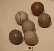Первыми мячами для игр, подобных современному гольфу, были деревянные шарики, изготавливавшиеся из твёрдых лиственных пород и использовавшиеся в период XIV—XVII веков. В XVII веке впервые появились так называемые «пернатые мячи» (featherie balls): они представляли собой сшитые круглые кожаные мешочки, набитые предварительно сваренными и смягчёнными куриными и гусиными перьями[1], покрашенные затем белой (обычно) краской. Изготовление таких мячей было трудоёмким процессом, поэтому их стоимость была высока[2]. Несмотря на то, что эти мячи летали плохо и на небольшие расстояния, а при сильном ударе могли даже развалиться, они использовались в гольфе до XIX века. В 1848 году Робертом Адамсом Паттерсоном был изобретён гуттаперчевый мяч для гольфа, сделанный из застывшего сока малайзийского дерева саподилла[3][4], значительно превосходивший «пернатый» мяч по своим аэродинамическим свойствам и получивший вскоре широкое распространение[5]. Резиновые мячи пришли на смену сападилловым в начале XX века, а с середины 1960-х годов для их изготовления стали использовать синтетические смолы, что сделало мячи более долговечными[6], хотя резиновые мячи были в ходу до конца XX века[7]. Патент на первый в мире «твёрдый» мяч для гольфа был выдан в 1967 году[8].