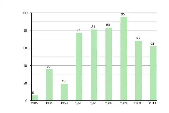 | 1905[2] | 1931[3] | 1959пер.[4] | 1970пер.[4] | 1979пер.[5] | 1986[6] | 1989пер.[7] | 2001пер.[8] | 2011пер.[9] |