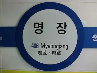 «Мёнджан» (кор. 명장역) — подземная станция Пусанского метро на Четвёртой линии. Она представлена двумя боковыми платформами. Станция обслуживается Пусанской транспортной корпорацией. Расположена в квартале Мёнджан-дон (57-39 Myeongjang 1(il)-dong) административного района Тоннэгу города Пусан (Республика Корея). На станции установлены платформенные раздвижные двери.