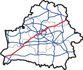 Проходит от границы с Польшей по территории Брестской, Минской и Витебской областей до границы с Россией. На всём протяжении представляет собой 4-полосную дорогу 1 категории. Магистраль проходит от Бреста мимо Жабинки, Кобрина, Берёзы, Ивацевичей, Барановичей, Столбцов, Дзержинска, Фаниполя, Минска, Смолевичей, Борисова, Крупок, Толочина, Орши до границы с Россией (Редьки). Ограничение скорости на разных участках — 90-120 км/ч. Проезд по магистрали является платным. От оплаты за проезд по автомагистрали освобождены транспортные средства, зарегистрированные на территории стран членов Таможенного союза с полной массой не более 3,5 тонн и буксируемые ими прицепы, мотоциклы и мопеды. Участок от Кобрина (M10) до Орши (0,5 км от перекрёстка дороги P87) общей длиной 505 км является скоростным.