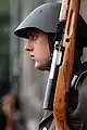 Солдат в М56 на почтовой марке ГДР, посвящённой Ноябрьской революции.