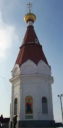 Часовня Параскевы Пятницы в Красноярске (1856, в 1996 году при реставрации был изменен внешний облик часовни. Маковка её заменена на значительно больший по размерам золоченый купол, что исказило её пропорции) 2410008000
