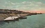 В 1834 году был предложен проект строительства набережной, разработанный военным строителем — подполковником Шмелевым. Проект не был выполнен. В 1842 году был предложен проект корпуса инженеров капитана барона Фиркса обустройства набережной, согласно которому набережная удлинялась до 924 метра. Работы по этому проекту также не были выполнены и благоустройству набережной растянулось на годы. В 1895—1905 годах в городе построили грузотоварную набережную с пирсом, водопроводом, освещением электричеством. Здесь находились громадные каменные корпуса хлебных амбаров, склады железа, меди и скобяного товара, каменного угля, лесные биржи, таможня, биржи по торговле рыбой и прочее. Здесь были пароходные пристани пассажирского и грузового движения, зерновые склады. До настоящего времени здесь сохранились пять корпусов, известных как «Парамоновские склады». Склады уцелели в годы Великой Отечественной войны. В настоящее время Парамоновским складам присвоен статус памятника истории и культуры федерального значения.