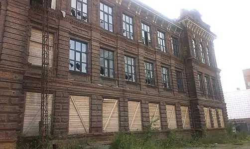 - Строители разбирают ветхое здание большой площади в центре Томска