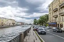Набережная реки Фонтанки у Никольского переулка, правая сторона, движение в сторону Летнего сада