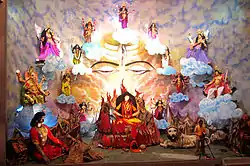 Согласно верованиям последователей шактизма, Дурга проявила себя в трёх основных формах: Махасарасвати, Махалакшми и Махакали. Эти три формы соответственно олицетворяют энергии, или шакти Брахмы, Вишну и Шивы. Каждая из этих форм проявила ещё две формы, которые получили общее название Навадурга.