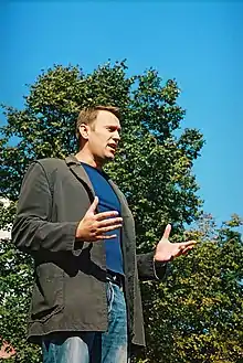 Алексе́й Анато́льевич Нава́льный (род. 4 июня 1976, Бутынь, Одинцовский район, Московская область, РСФСР[7][8]) — российский оппозиционный лидер[9][10], юрист, политический[11] и общественный деятель[2], получивший первоначальную известность своими расследованиями о коррупции в России[12]. Рядом ведущих СМИ позиционируется как главный лидер российской оппозиции[13]. Создатель «Фонда борьбы с коррупцией», объединяющего дочерние проекты: «Умное голосование», «Профсоюз Навального», «РосПил», «РосЖКХ», «РосЯма», «РосВыборы», «Добрая машина правды».