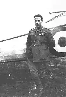 «Прапорщик эскадрильи MS12, умелый и преданный пилот, провел несколько воздушных боев, один из которых закончился пленением двух неприятельских офицеров и неприятельского самолета. Вызывался добровольцем на все трудные задания, выполнил три специальные и особенно опасные миссии с полным успехом».