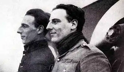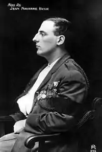 | Лётчики MS12 перед самолётом Наварра. Справа-налево: Наварр, аспиран Пелетье д'Уази и командир эскадрильи капитан Раймон де Пьер де Берни. Лето 1915 г.. | Пьер и Жан Наварр. | Жан Наварр. |