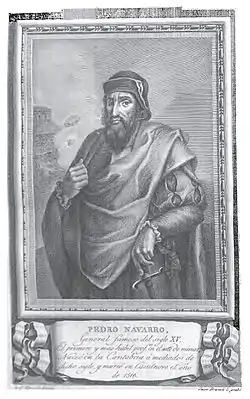 Педро Наварро — представитель знатного, но обедневшего семейства наваррского происхождения. На военном поприще особенно выделялся знанием артиллерийского и инженерного дела. Прославился в военных конфликтах Средиземноморья, где сражался, защищая то свои личные интересы, то интересы испанского короля, то французского.