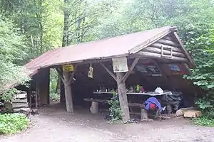 Бревенчатый навес в студенческом палаточном городке