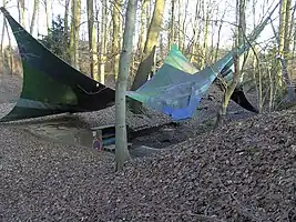 Полотняный навес в туристическом походе на привале