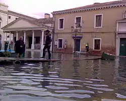 Наводне́ния в Венеции (итал. acqua alta) — регулярные, в том числе сезонные подъёмы воды в дельте реки По, Венецианской лагуне, а также в соседних регионах северной Адриатики, которые вызывают затопление значительной части территории Венеции, а также других приморских городов по линии Кьоджа — Триест. Основная причина наводнений — ветровой нагон воды, к которому в последнее время добавился антропогенный фактор (разрушение плавней и активный дренаж заболоченных низин). Приливы и небольшие временные подъёмы уровня воды в прошлом играли благоприятную роль в жизни города, так как они уносили из его каналов сточные воды. Теперь же, когда погружение островов Венецианской лагуны ускорилось, частота наводнений увеличилась, а последствия от них значительно усугубились, поскольку солёная вода разрушает кирпичную кладку, а максимальная высота островов Венеции не превышает 2 м над уровнем моря. Своеобразным индикатором благосостояния города является его самая низкая точка — площадь Сан-Марко. Явления так называемой высокой воды, ранее наблюдавшиеся на площади в среднем 9 раз в году, теперь происходят в среднем 90—100 раз в год[1].