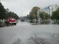 - 5 сентября вода поднялась до отметки 8,5 м; погиб солдат-контрактник, младший сержант Баир Банзаракцаев[37] (КамАЗ, на котором он двигался в составе автоколонны, сполз с размытой дороги[38]) — единственная жертва наводнения на территории России[39].