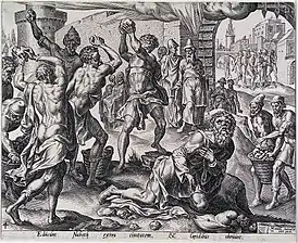 ![]() Дирк Волькертсен Коорнгерт. Побиение Навуфея камнями. | |