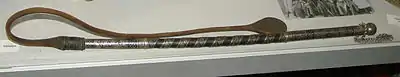 Разновидность калмыцкой плети с равномерно туго сплетённым, почти не гнущимся кожаным хлыстом без сужения к кончику