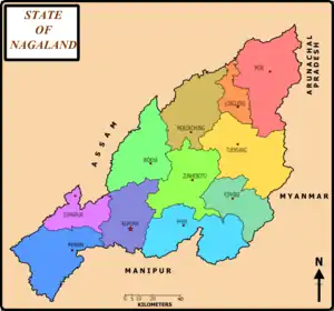 После провозглашения независимости Индии в 1947 году территория входила в состав штата Ассам. В то время Нагаленд назывался Нага-Хилз-Тюнсан. Однако местное население испытывало недовольство и боролось за самоопределение. В 1951 году был проведён референдум, в ходе которого 99,9 % проголосовавших высказались за создание независимого Нагаленда, а в 1952 году нага бойкотировали выборы в индийский парламент[2]. Поэтому в 1961 году территория была переименована в Нагаленд и получила статус штата Индийского Союза, формально провозглашённого 1 декабря 1963 года.