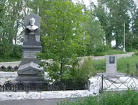 - Надгробие на могиле Ядринцева Н. М. — ул. Гвардейская, 1. Первый бюст был отлит из бронзы в 1904 году архитектором К. М. Сибиряковым. В первоначальном виде памятник простоял до 1936 года, после чего был снят, а во время Великой Отечественной войны переплавлен на вкладыши к подшипникам. В 1956 году памятник восстановили из алюминия, покрасив под бронзу. Вскоре после 100-летия со дня смерти Ядринцева бюст его исчез с пьедестала второй раз. Воры приняли алюминий за бронзу и выкорчевали голову из плеч. Третий по счёту бюст был заказан художнице Людмиле Рублевой к юбилею города, но несмотря на то, что он был выполнен из бетона и лишь покрашен под бронзу, его также похитили неизвестные в июле 2004 года. В данный момент на надгробии установлена чётверая версия бюста Яндринцева[23].