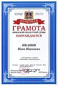 Почётная грамота Брянской областной Думы |