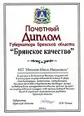 Почётный диплом «Брянское качество» |