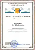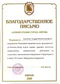 Благодарственное письмо администрации города Кирова |