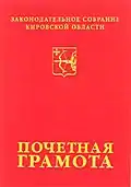 Почётная грамота Законодательного Собрания Кировской области – высшая награда законодательного органа государственной власти Кировской области, является поощрением за активную и плодотворную деятельность на благо Кировской области. Почётной грамотой награждаются граждане и организации, предприятия, учреждения независимо от организационно-правовых форм и форм собственности Российской Федерации, иностранные граждане за значительный вклад в совершенствование законодательства Кировской области, в развитие экономики Кировской области, науки, культуры, искусства, других сфер государственной и общественно значимой деятельности, за заслуги в государственном строительстве, воспитании, просвещении, охране здоровья, жизни и прав граждан, за активное участие в общественной жизни. |