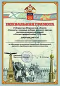 Похвальная грамота Губернатора Мурманской области «В память о славных победах русского оружия над наполеоновской армией в Отечественной войне 1812 года» |