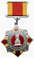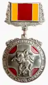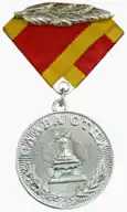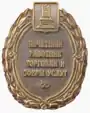 Первоначально выпускался как медальон на подставке с зажимом. Позже появились вариант на колодке и фрачный знак. ![]() |