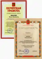 - Почётные грамоты;