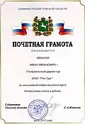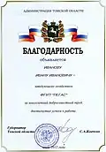 Благодарность Администрации Томской области |