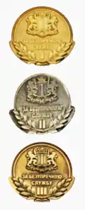 Награждение почётным знаком Губернатора Ульяновской области «За безупречную службу» является формой поощрения за безупречную государственную гражданскую и муниципальную службу, профессионализм, достижение значительных результатов в профессиональной служебной деятельности, высокую культуру исполнения должностных обязанностей, за вклад в социально-экономическое развитие Ульяновской области, муниципальных образований Ульяновской области. Почётный знак имеет три степени, высшей является I степень. Награждение Почётным знаком производится последовательно от низшей степени к высшей. При наличии выдающихся заслуг допускается награждение Почётным знаком более высокой степени без получения награды предыдущей степени. Почётным знаком награждаются государственные гражданские и муниципальные служащие, за существенный вклад в социально-экономическое развитие Ульяновской области, муниципальных образований Ульяновской области, проработавшие в государственных органах Ульяновской области, органах местного самоуправления и избирательных комиссиях муниципальных образований Ульяновской области не менее 5 лет (III степени); не менее 10 лет (II степени); не менее 15 лет (I степени). |