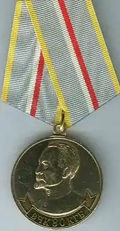 Медаль «Маршал Советского Союза Жуков» была учреждена для награждения ветеранов войны и труда, Вооружённых сил, правоохранительных органов, активных участников народно-патриотической деятельности[44].