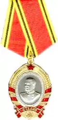 Орден Сталина был учреждён указом «Постоянного Президиума Съезда народных депутатов СССР» от 4 марта 1998 года. В статуте ордена указано, что им награждаются граждане Советского Союза, «проявившие героизм в борьбе с антинародным режимом», а также граждане, внёсшие вклад в восстановление единого советского пространства, построение социализма, в восстановление промышленного потенциала, сельского хозяйства, в укреплении обороноспособности и безопасности страны, в развитие науки и культуры, в укрепление дружбы между народами. Право на выдвижение кандидатов на награждение предоставляется трудовым коллективам, ветеранским организациям, лево-патриотическим партиям и движениям[44].