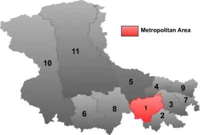 | 1 | Район | Сэни | 色尼区 | Sèní qū | ནགསེར་རྙེད་ཆུས། | gser rnyed chus | 80 000 | 16 195 | 5 |
