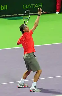 Рафаэ́ль Нада́ль Паре́ра (исп. Rafael Nadal Parera; род. 3 июня 1986[1][2][3][…], Манакор, Балеарские острова[1][4]) — испанский теннисист, пятая ракетка мира в одиночном разряде. За карьеру одержал 21 победу на турнирах Большого шлема в одиночном разряде (рекорд среди мужчин по этому показателю), в том числе рекордные 13 раз выигрывал Открытый чемпионат Франции (рекорд по победам на одном турнире Большого шлема в одном разряде). Обладатель карьерного «Золотого шлема» в одиночном разряде (победа на всех турнирах Большого шлема и олимпийское золото не в один год).