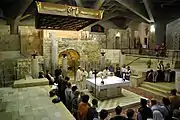 Католическая месса совершается около грота Благовещения в базилике Благовещения