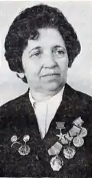 Указом Президиума Верховного Совета СССР от 7 марта 1960 года в ознаменование 50-летия Международного женского дня, за выдающиеся достижения в труде и особо плодотворную общественную деятельность удостоена звания Героя Социалистического Труда с вручением ордена Ленина и золотой медали «Серп и Молот»[1].