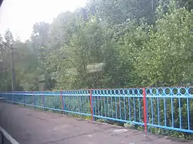 К западу от платформы — мост через реку. Дачные посёлки также к северу от платформы.