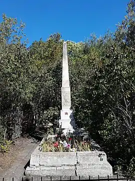 - Монумент установлен на месте его захоронения в братской могиле Старого кладбища Феодосии.