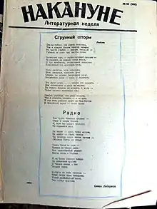 В 1994—1995 годах в России, в Москве, выходила общественно-историческая просветительская газета под одноименным названием «Накануне» (учредитель «Элион-Центр»; главный редактор — Бень, Евгений Моисеевич), отстаивавшая традиции классической культуры. В газете публиковались известные писатели, публицисты, искусствоведы.