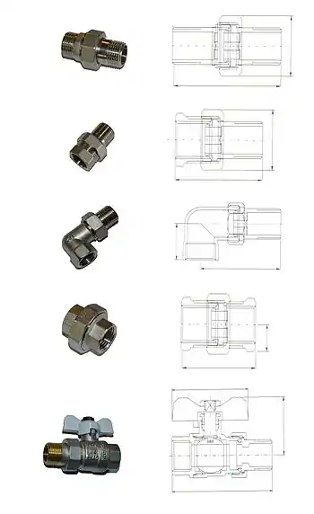 - можно применять в сантехнических устройствах, имеющих муфтовое резьбовое соединение, а также совместно с полипропиленовыми трубами.