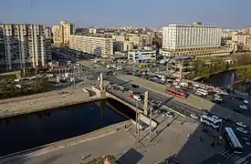 Выше по течению находится Ново-Андреевский мост, ниже — мост Кораблестроителей.