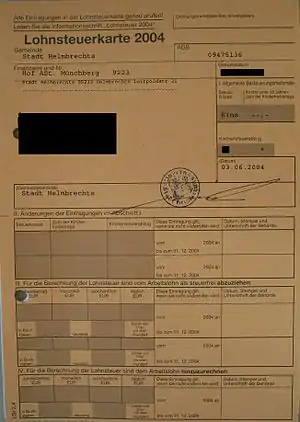 Налоговый класс (нем. Lohnsteuerklasse) определяет в Германии величину налога на заработную плату, налога солидарности и церковного налога налогоплательщика. Выбор налогового класса влияет также на величину многих социальных выплат — пособия по безработице, социальных пособий, детских пособий, пособия по беременности и родам и др.