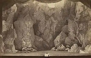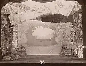 - А. Ф. Гельцер. Эскиз декорации. Картон, графитный карандаш, акварель, белила, бронзовая краска. 1899 год.