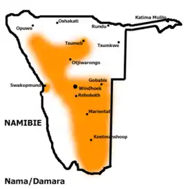 ![]() Карта распространения языка в Намибии | |