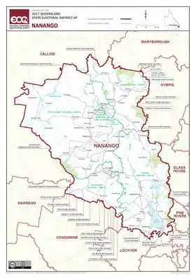 - Map showing the boundary for the Queensland electoral district of Nanango (англ.). — Brisbane: Dept. of Natural Resources and Water, 2008.