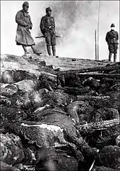 ![]() Берег реки, усеянный телами китайцев, расстрелянных японской армией. | |