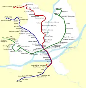 Открытие Линии 1 (Bellevue — Haluchère) 7 января 1985 года показало успех предприятия (трамваем стало пользоваться до 42 тысяч пассажиров в день), и вскоре была сооружена Линия 2, соединяющая север города с югом (с пересадкой на Линию 1, станция Commerce). Линия 3 (открыта в 2000 году) использует часть общего маршрута с Линией 2.