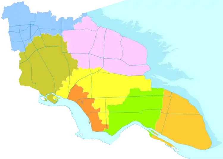 Кроме того, на северном побережье острова Чунминдао расположены два городка — Цилун и Хайён — которые административно входят в состав уезда Цидун и района Хаймэнь (подавляющая часть острова входит в состав шанхайского района Чунмин).