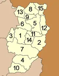 Провинция подразделяется на 15 районов (ампхе), которые, в свою очередь, состоят из 99 подрайонов (тамбон) и 848 поселений (мубан).